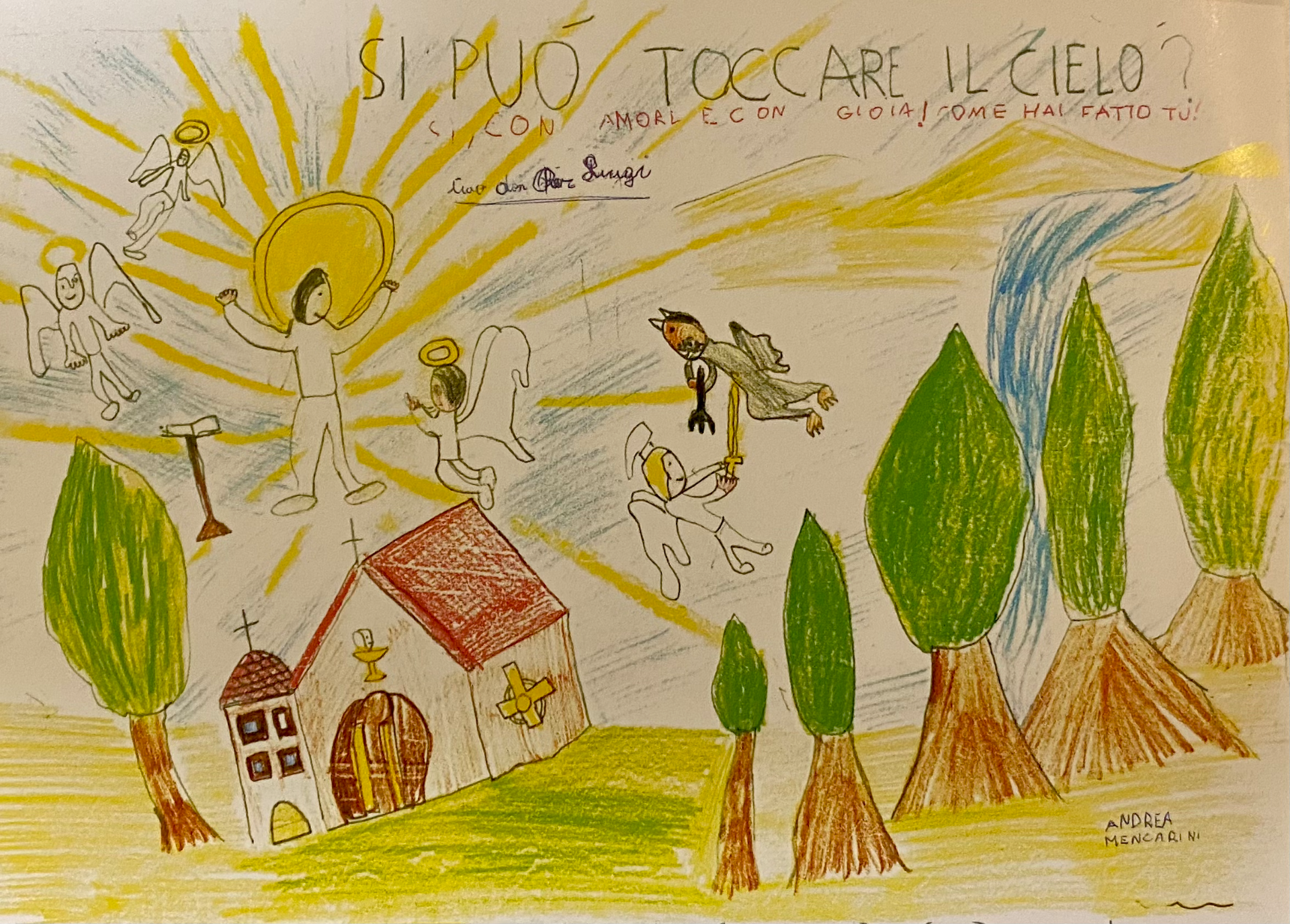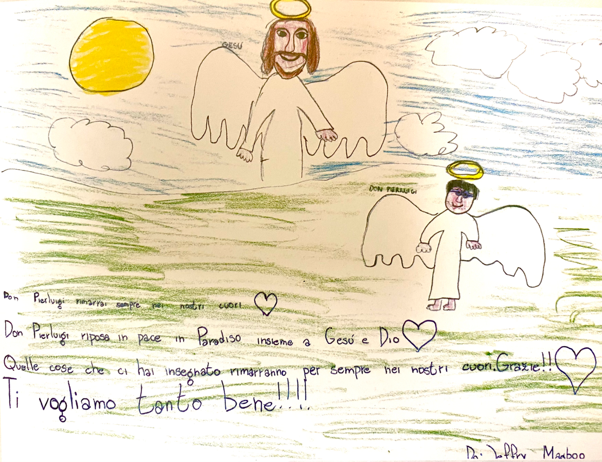 Tra le numerose espressioni di affetto e di gratitudine vi sono state anche quelle dei bambini della parrocchia, che attraverso disegni e brevi scritti hanno voluto ricordare il loro parroco con parole semplici e spontanee.